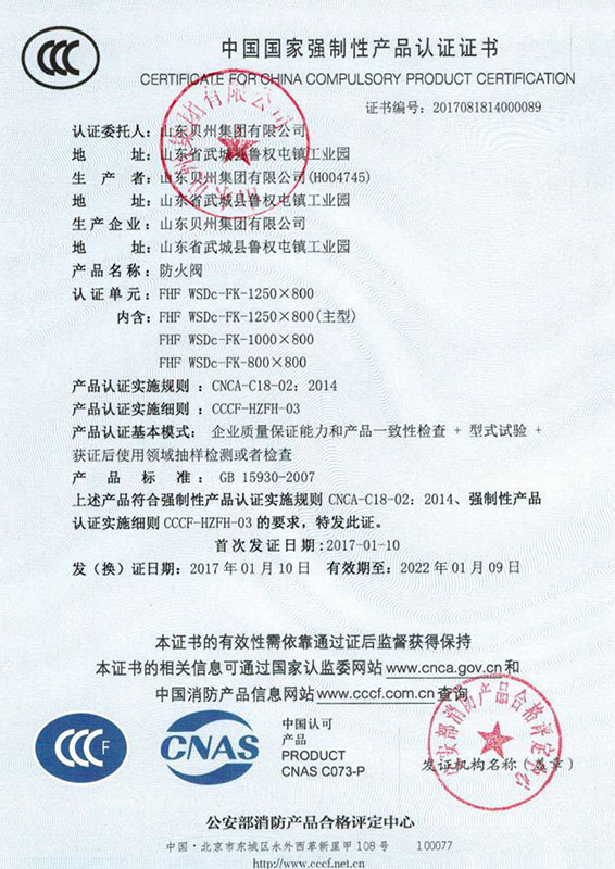 • 防火閥認證證書